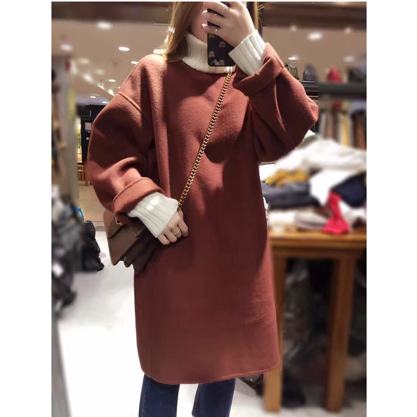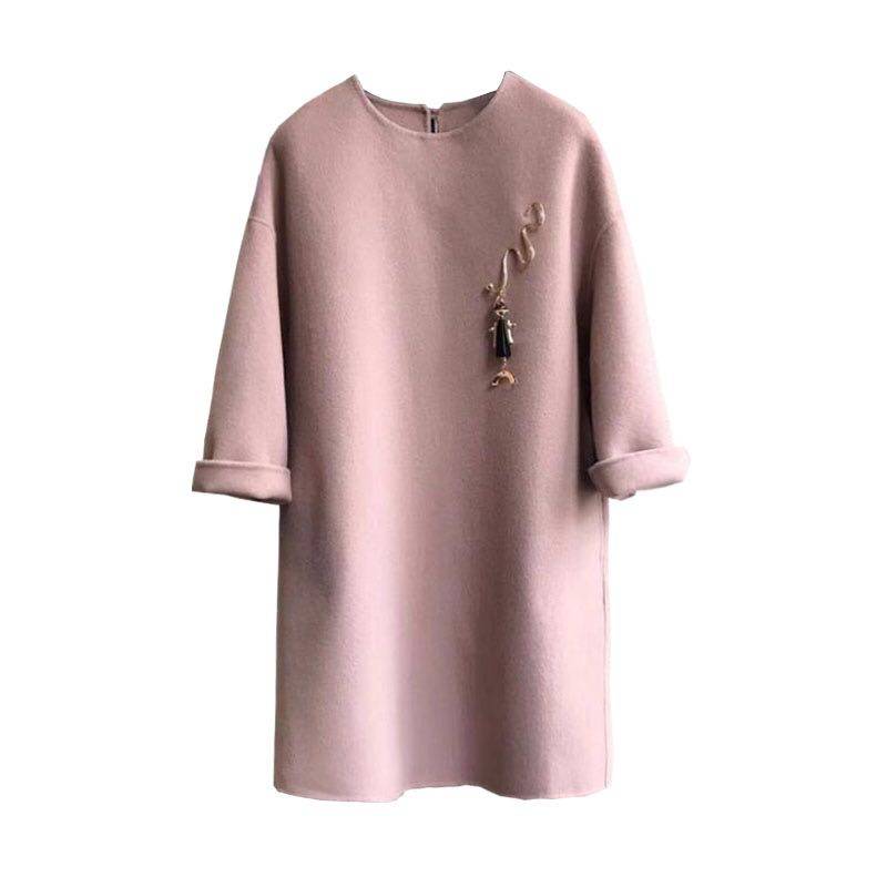 羊绒时尚 秋冬宽松大码 毛呢外套裙子 韩版 双面羊毛连衣裙女2025新款