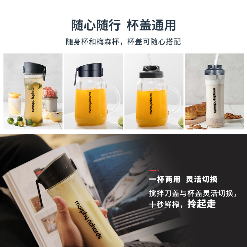 美 电动小型奶昔杯水果搅拌料理榨果汁机 榨汁机家用多功能便携式