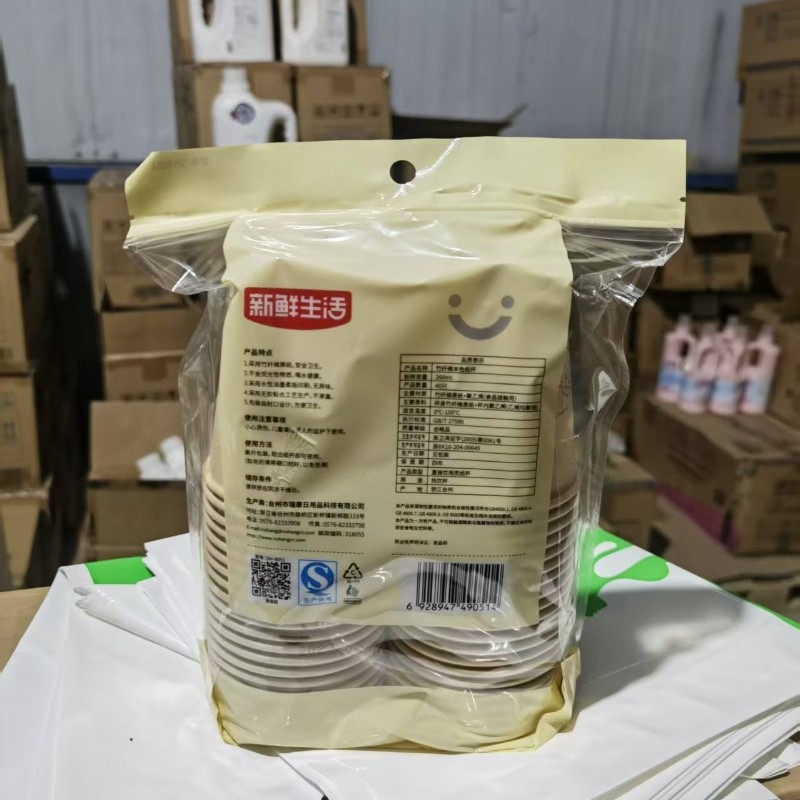 新鲜生活一次性加厚纸杯竹纤维本色杯子不漏喜宴聚会旅游家庭发票