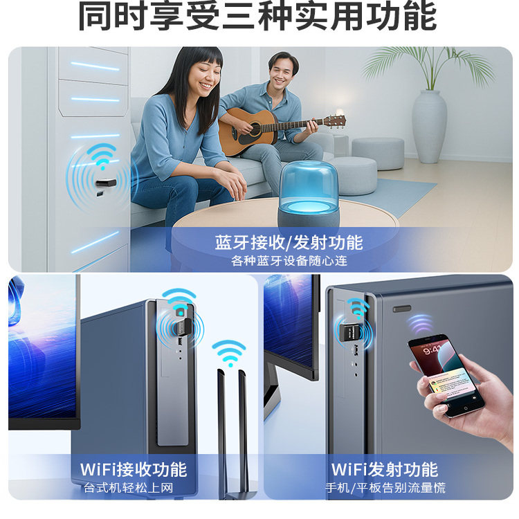 COMFAST 机电脑笔记本wifi接收发射器无线网传输模块723B 无线网卡WiFi蓝牙二合一外置蓝牙适配器无线网卡台式