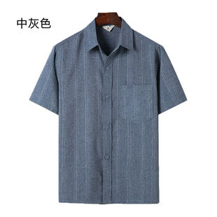 中老年亚麻短袖 寸衫 衬衫 爸爸爷爷装 男棉麻宽松上衣老年人薄款 夏季