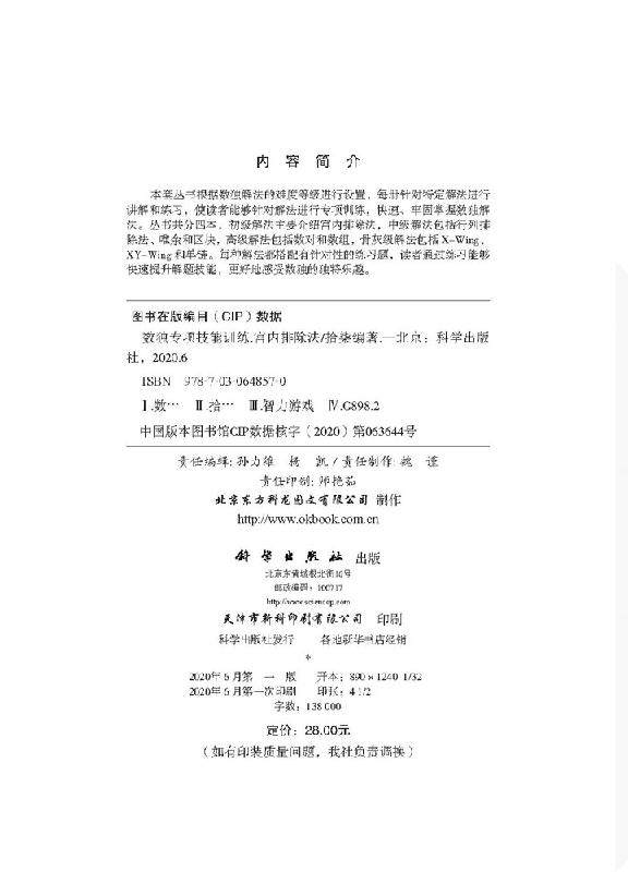 科学出版 数独专项技能训练:宫内排除法 头脑体操思维风暴 编著 社 拾柒