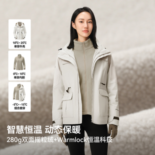 加厚保暖内胆防风登山外套 伯希和户外三合一冲锋衣女冬季 山色