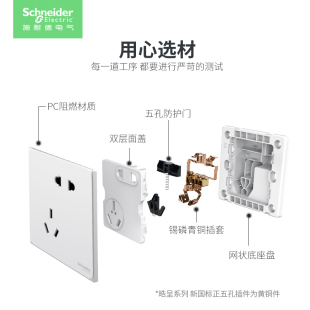 施耐德官方旗舰店暗装 USB五孔插座开关16A插座面板家用皓呈奶油白