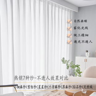 窗帘纱帘透光不透人天丝绒纱阳台白色垂感糖豆纱窗纱飘窗幻影白纱