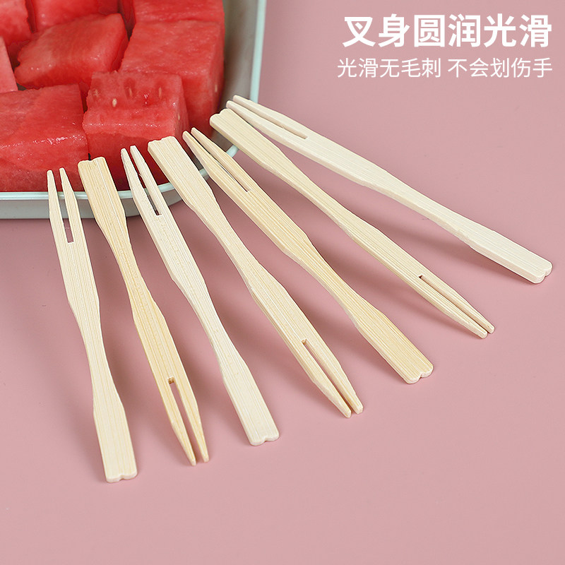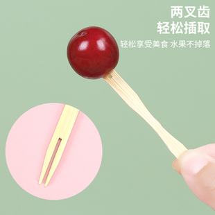 双枪竹水果叉水果签蛋糕叉食品叉点心叉小吃叉家用无漆无蜡牙签