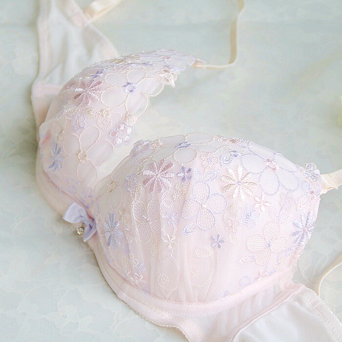 日单 少女低心位甜美薄棉杯单文胸65B70B70C 花芯
