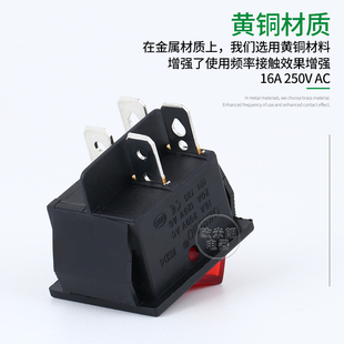 船形开关 250V 翘板电源按钮 16A 31x25mm 4脚带灯 KCD4船型开关