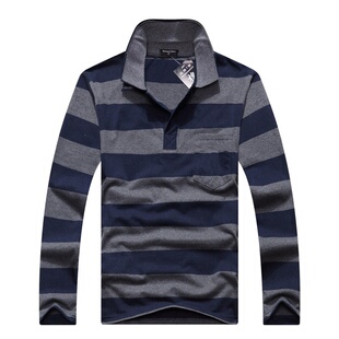 上衣休闲带领宽松大码 男士 t恤翻领棉质男式 长袖 T恤 秋衣打底衫