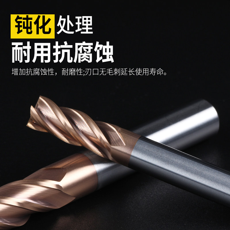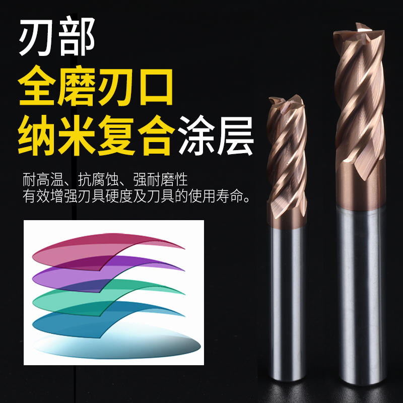 55度钨钢合金铣刀4刃钢用立铣刀加长平底涂层直柄硬质CNC数控刀具