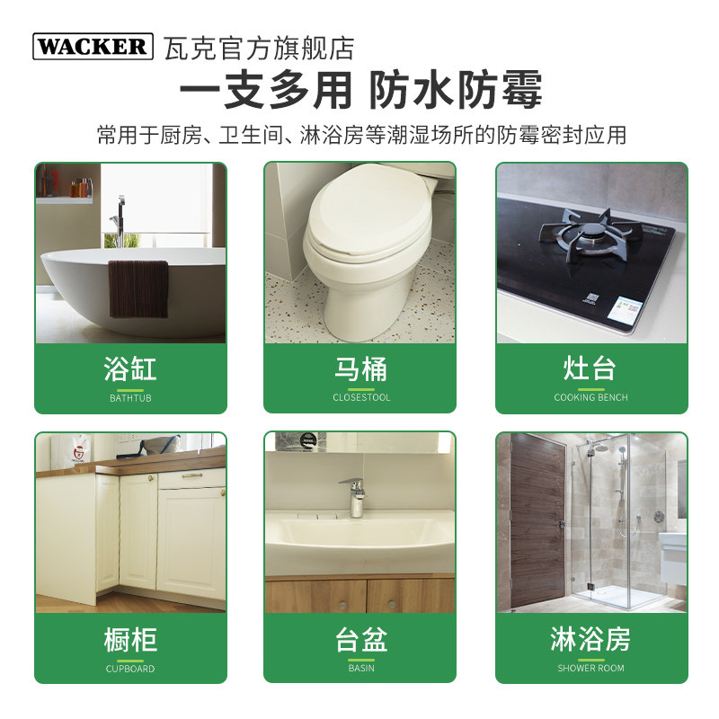 德国瓦克KB防水防霉厨卫玻璃胶美容胶DA马桶底座白色透明密封硅胶