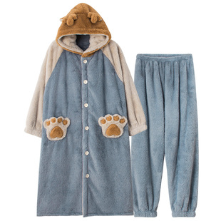 中长款 冬保暖睡衣家居服套装 睡袍毛绒浴袍加厚情侣款 三层加厚