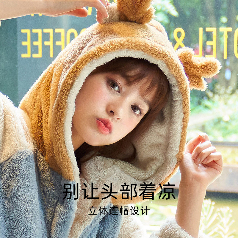 秋冬浴袍可穿浴巾女家用珊瑚绒吸水柔软速干浴裙洗澡睡袍睡衣连帽