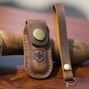 适用瑞士刀具皮套折叠刀套牛皮真皮手工挂腰便携猎人保护套刀鞘