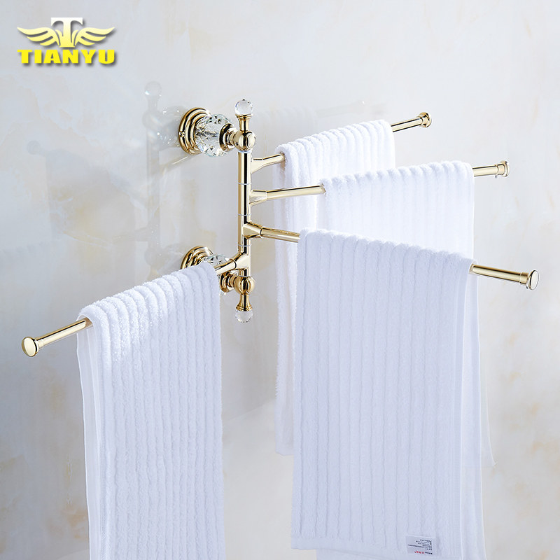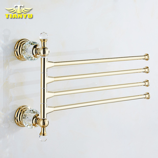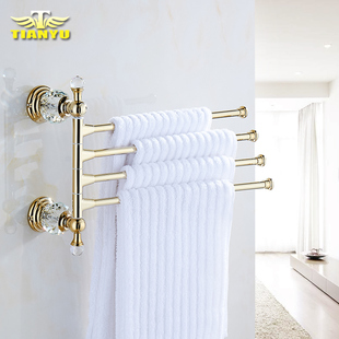 欧式 水晶金色活动毛巾架毛巾杆旋转毛巾架卫生间浴室毛巾挂三四杆