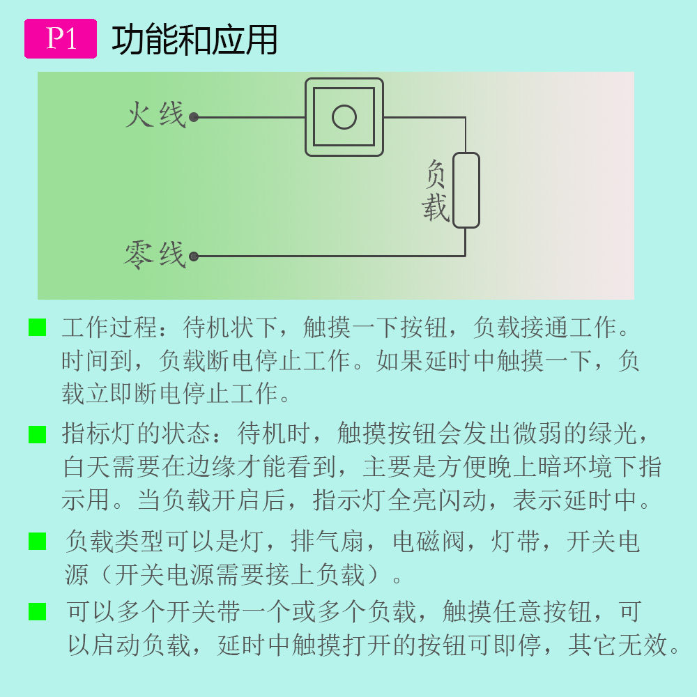 正品 翩诚86型120W触摸可调延时开关单火线二线制楼道自动关闭断电