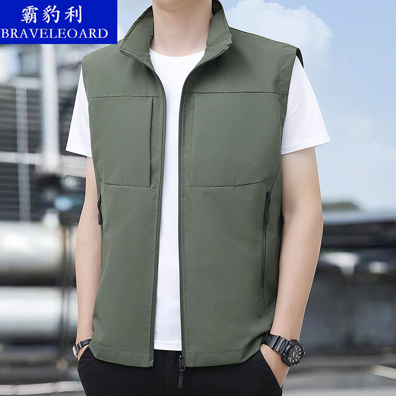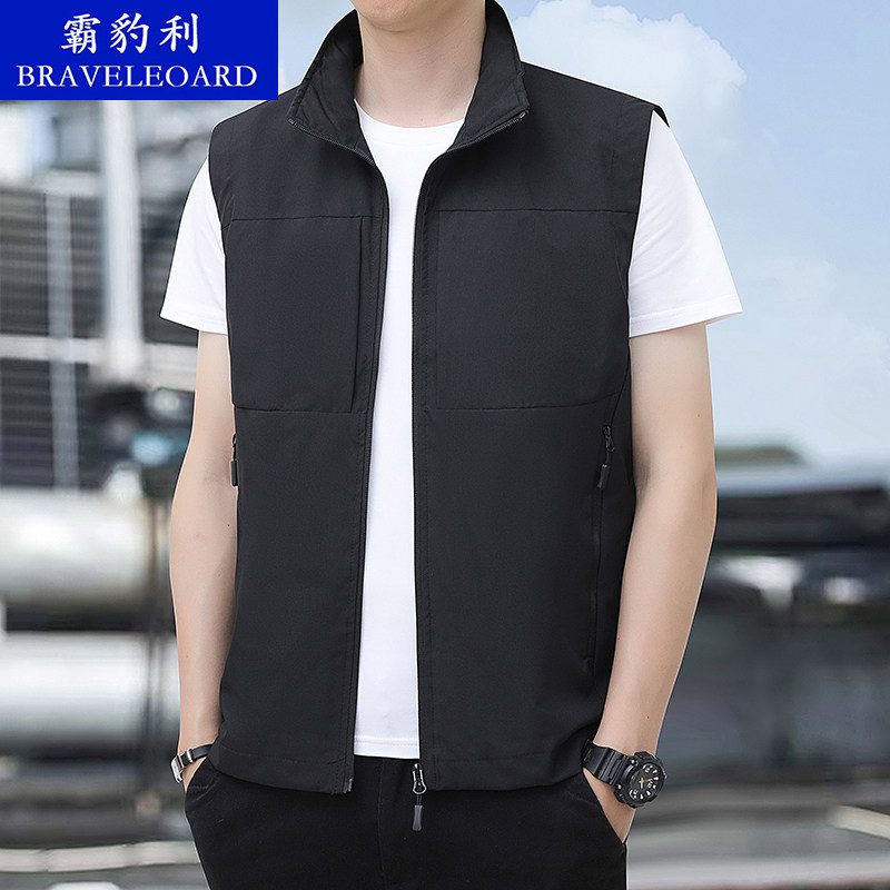 宽松立领大码 口袋薄款 速干外套夹克钓鱼 马甲户外休闲男士 坎肩新款