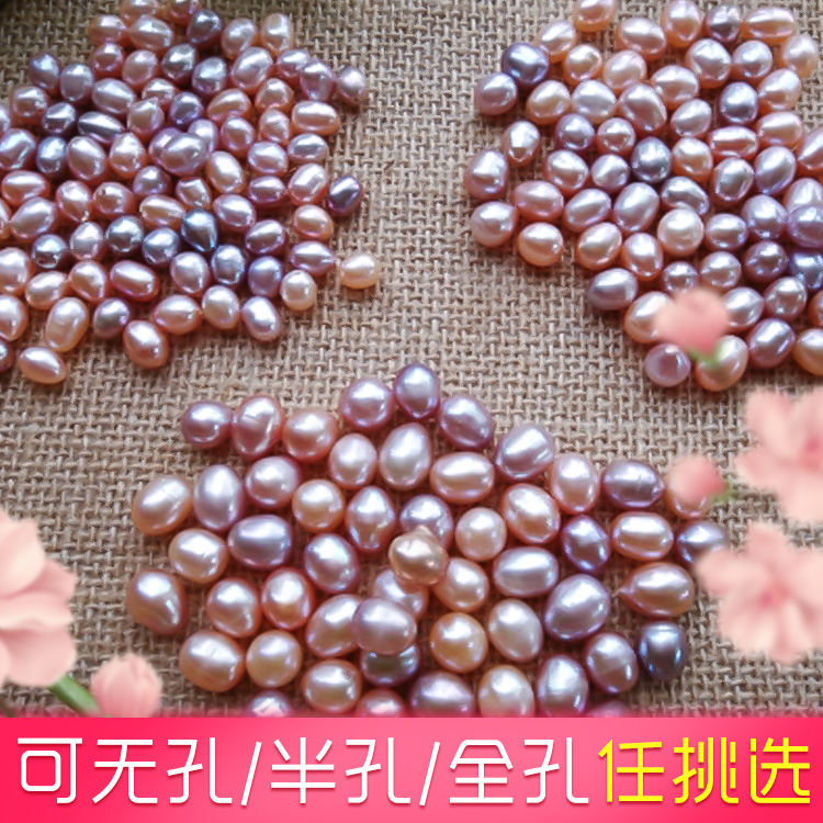 真天然淡水无核强光珍珠小diy配件散珠称斤批带孔手链颗粒供曼扎