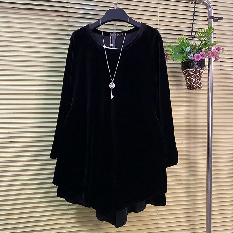 裙胖mm2024爆款 百搭丝绒大衫 显瘦宽松大尺码 裙子大码 秋季 女装 新款