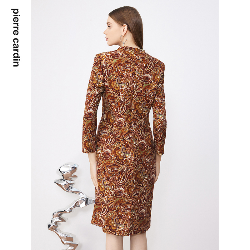 复古印花通勤羊毛裙子 连衣裙秋冬法式 商场同款 皮尔卡丹女装