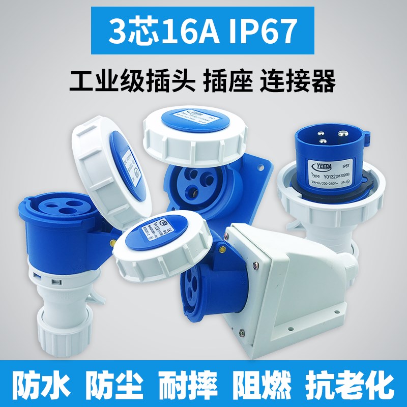 怡达三芯16A防水IP67航空防爆连接器220V明暗装 工业插头插座Y0132