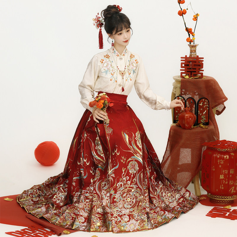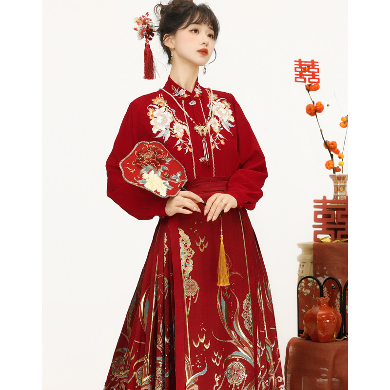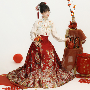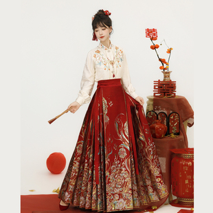 国风 日常通勤新中式 云若兮锦鲤订婚结婚拜年服明制马面裙套装 新款