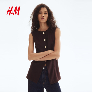 无袖 圆领修身 通勤商务针织马夹1301297 马甲春季 HM女装