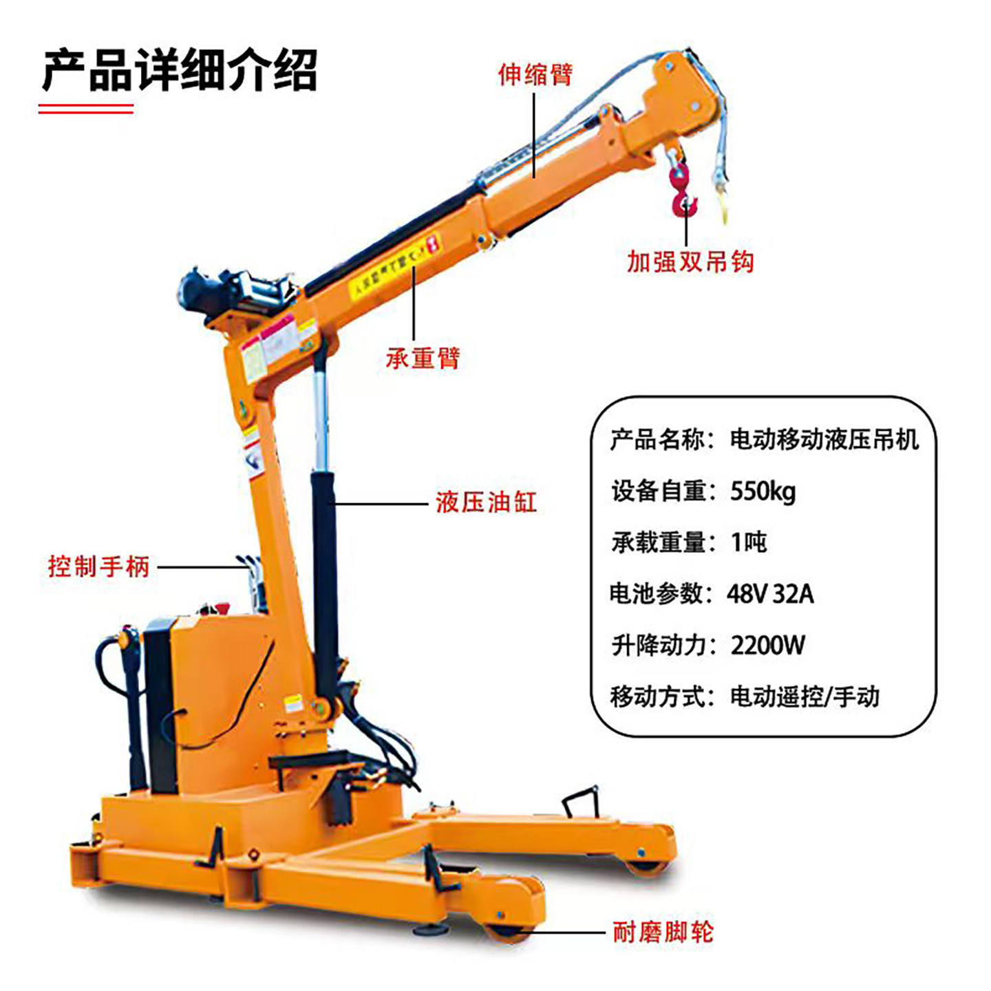 液压移动小型吊机电动旋转手推1吨2吨悬臂吊可遥控搬运升降起重机