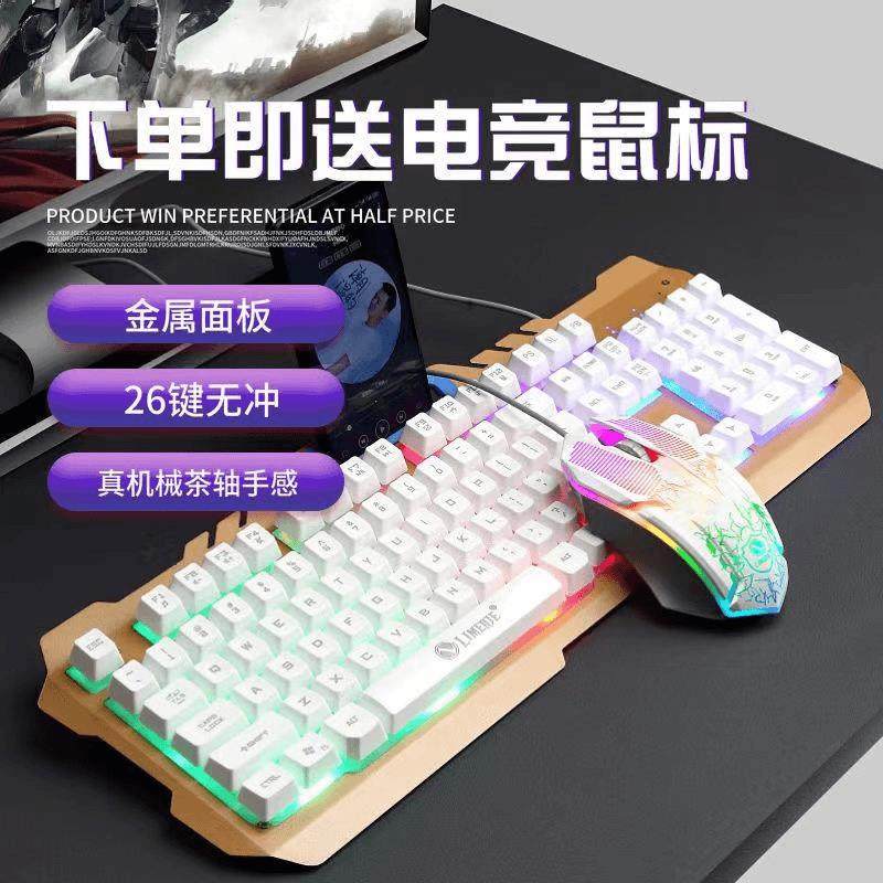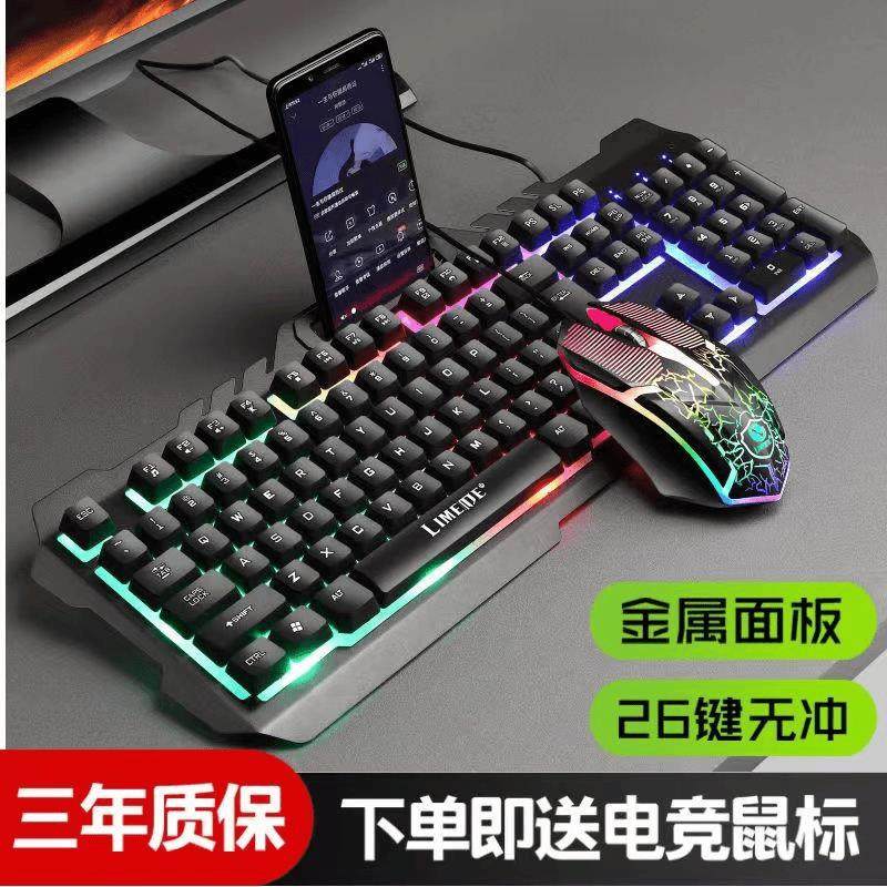 电竞机械手感游戏键盘鼠标办公台式 机笔记本通用电脑有线键鼠发光