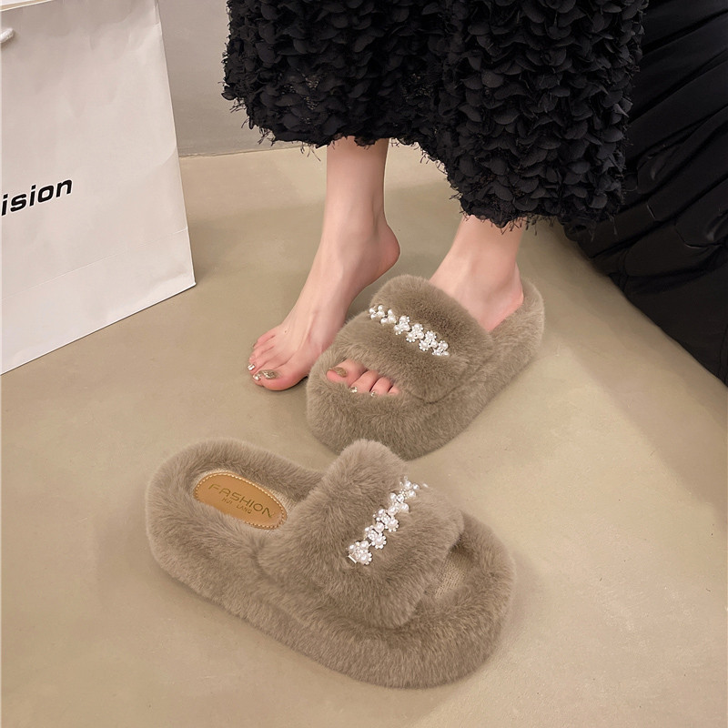 室内居家加绒保暖厚底防滑一字拖男外穿 2025新款 包跟棉拖鞋 女冬季