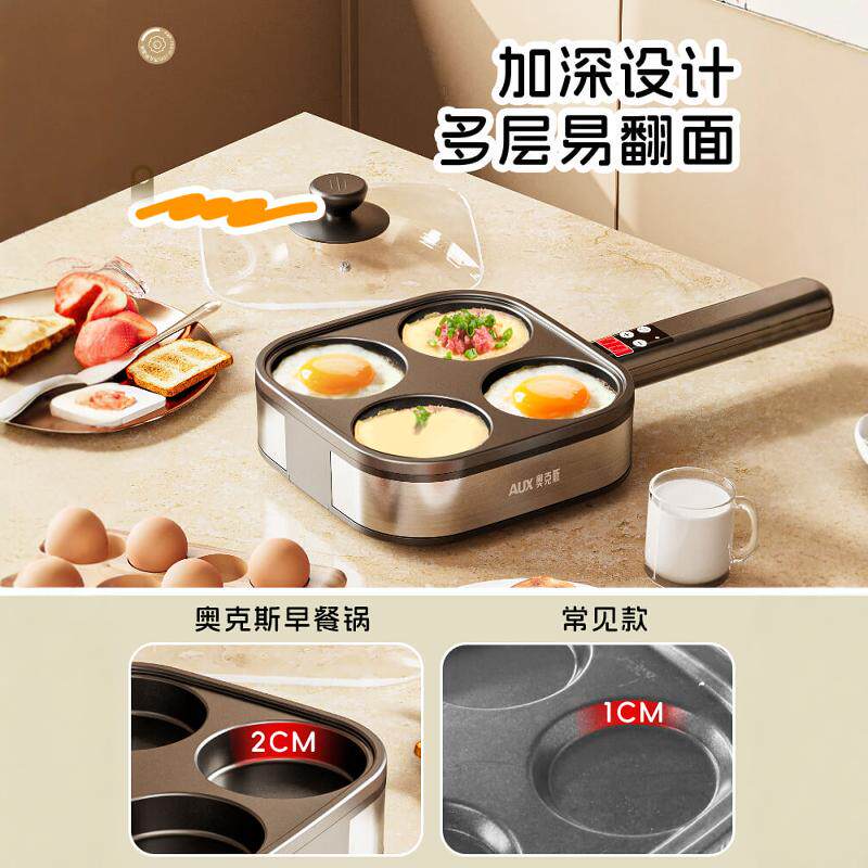 奥克斯煎蛋器自动断电家用小型多功能早餐荷包蛋不粘四孔煎蛋神器