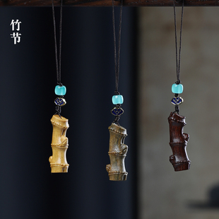 檀木雕竹节步步高升创意复古手机挂链包包装 饰挂件钥匙扣
