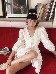 小飞袖 琉光雾镜 方领蕾丝拼接设计长裙连衣裙 热狗很辣 Hotdog