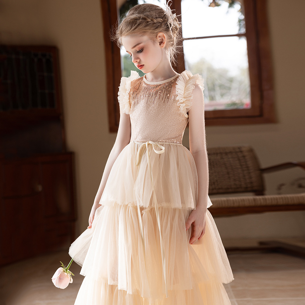 钢琴演奏礼服女童轻奢小众高端儿童小主持人花童生日公主裙演出服