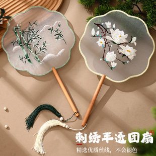 古风苏州团扇扇子新中式 汉服舞蹈扇专用 苏绣双面绣刺绣手工古装