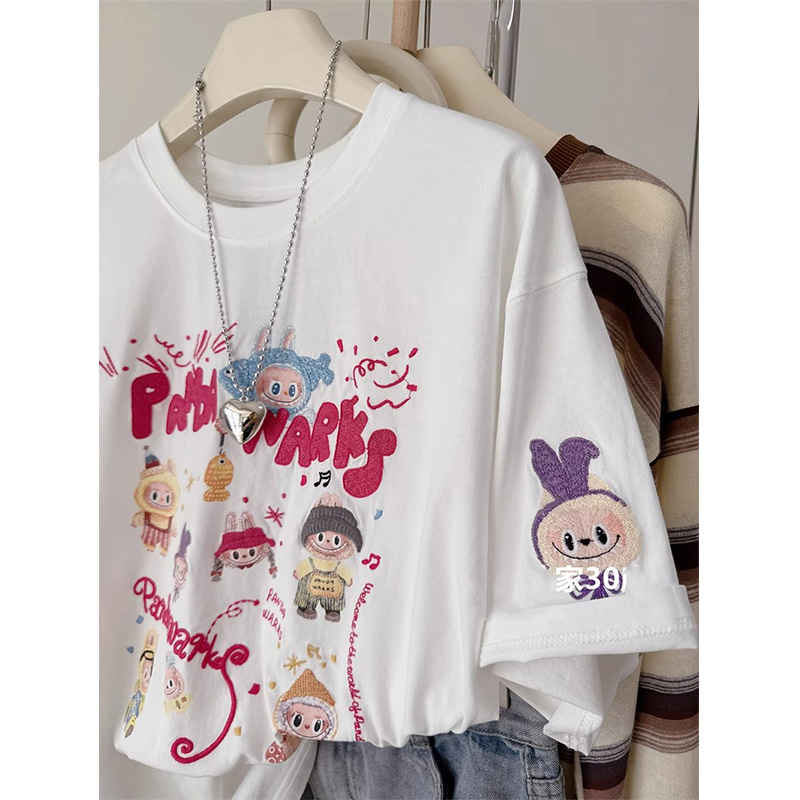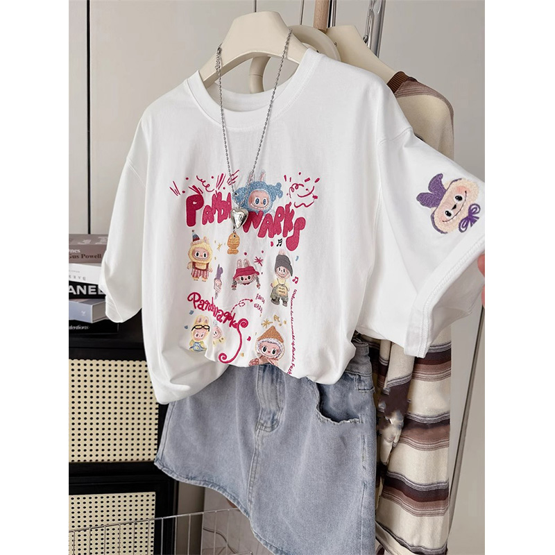 广州十三行外贸清仓捡漏 T恤上衣 纯棉卡通拉布布印花宽松男女短袖