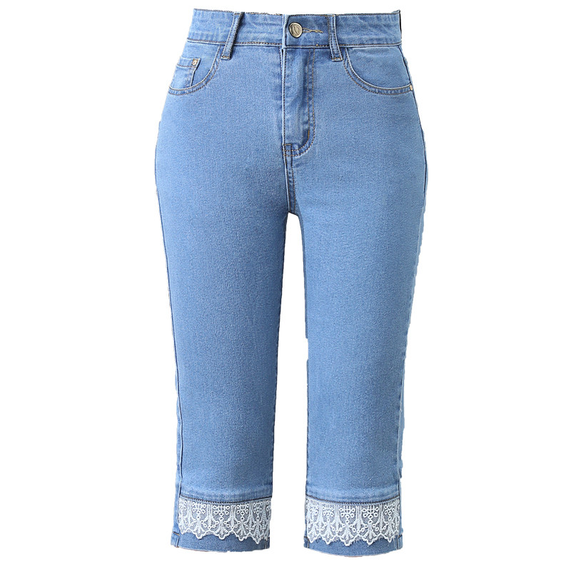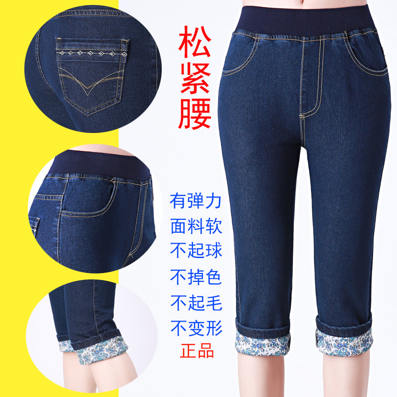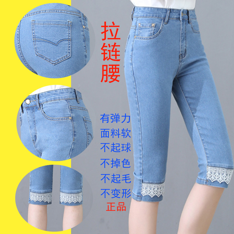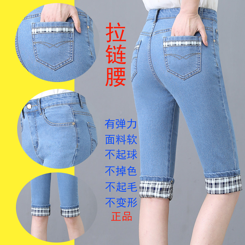 薄款 宽松中裤 子女大码 高腰新款 显瘦马裤 女夏季 弹力修身 七分牛仔裤
