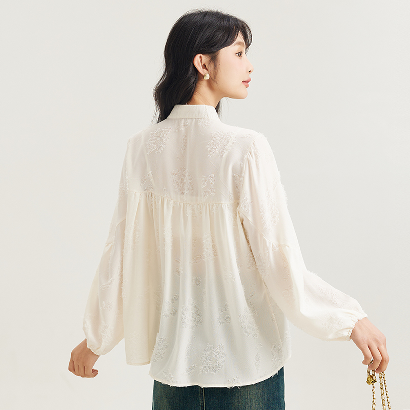 设计感小众复古国风衬衫 女2025春秋新款 提花立领小衫 D.SIGN新中式