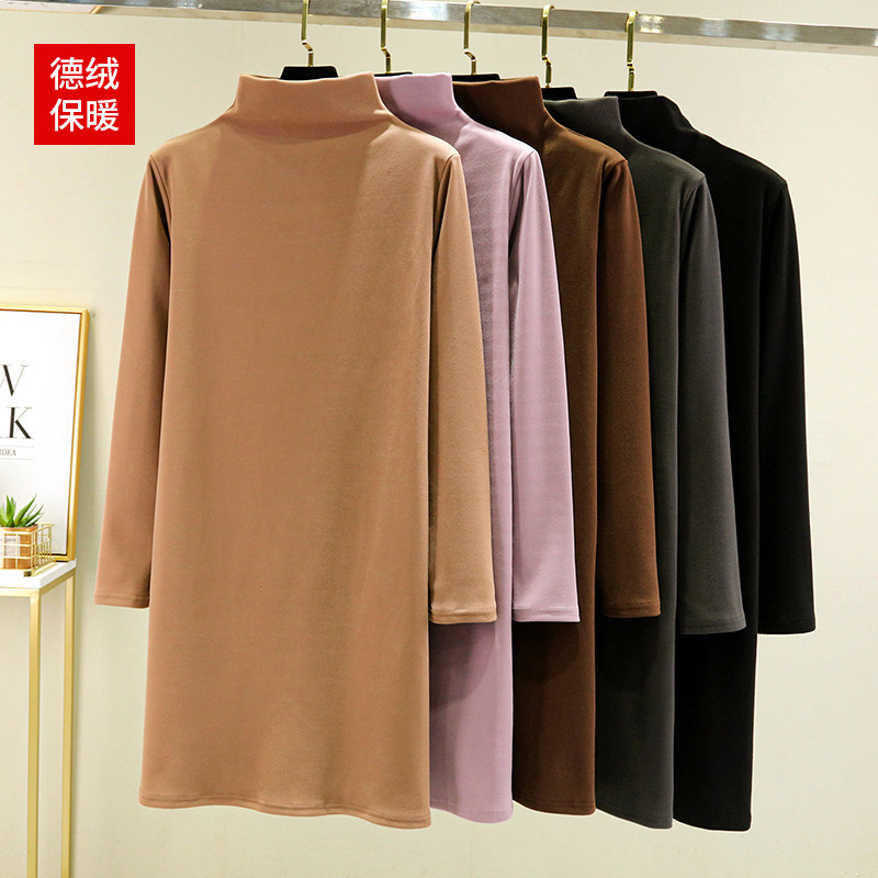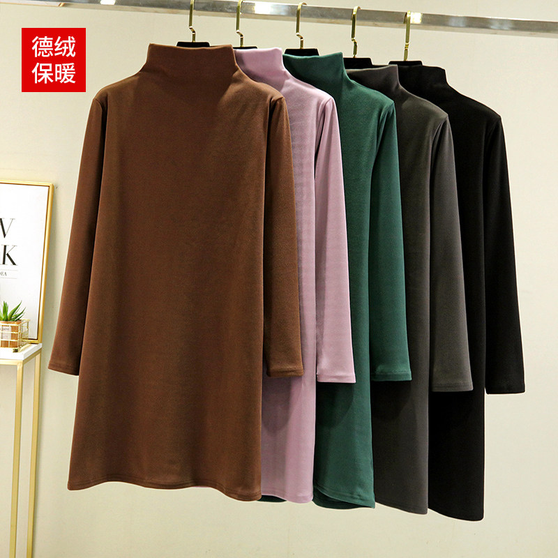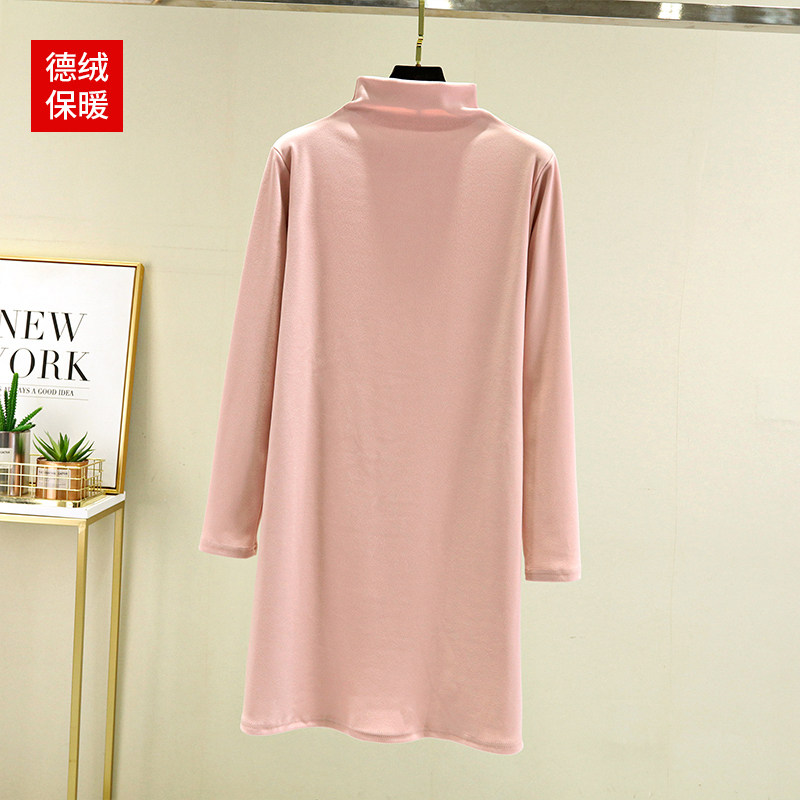 t恤德绒发热保暖上衣 女秋冬宽松学生中长款 加绒半高领长款 打底衫