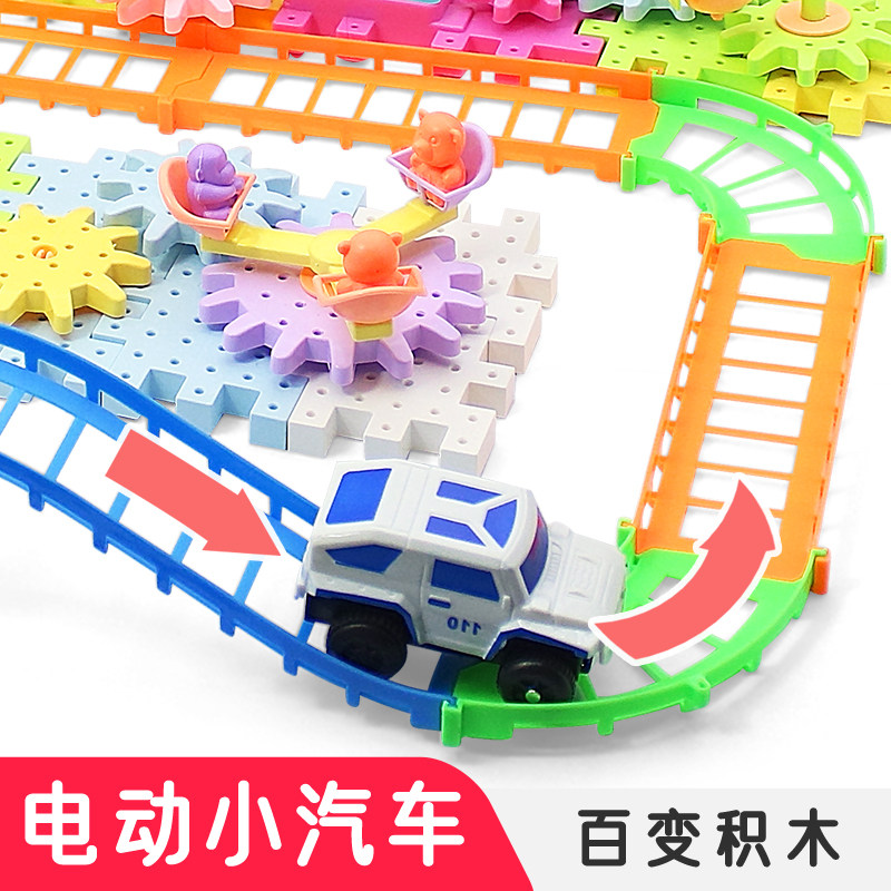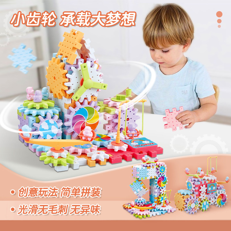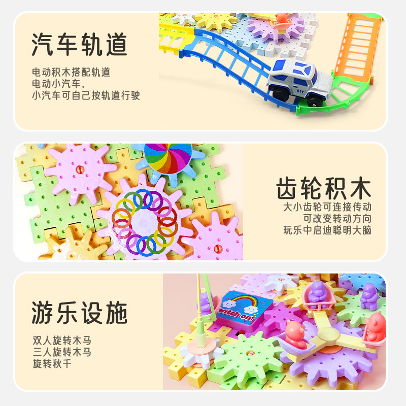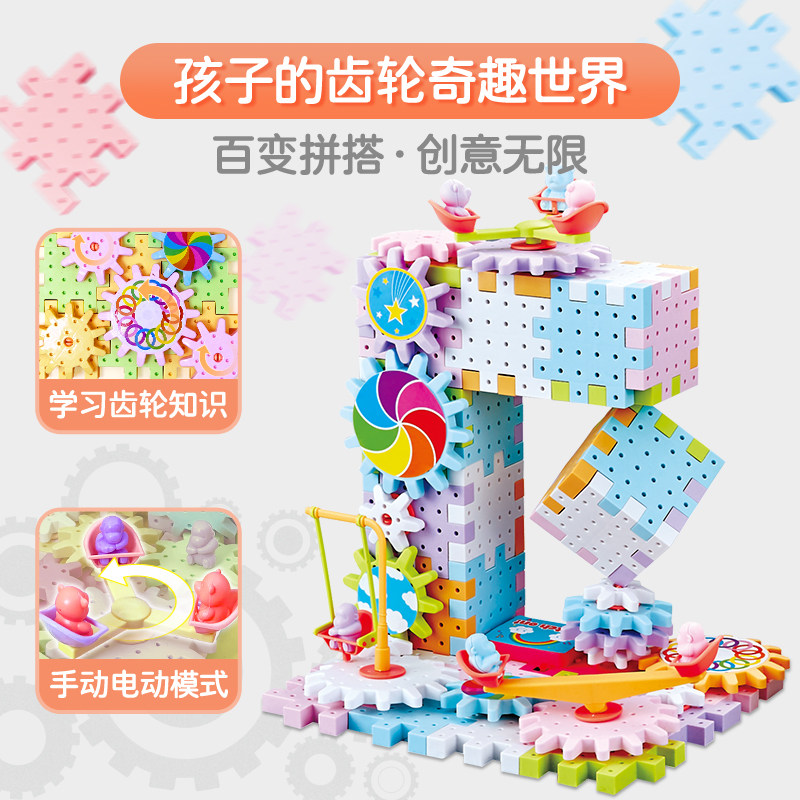 6岁拼装 百变电动积木齿轮旋转玩具拼插益智大颗粒拼图套装 男孩3