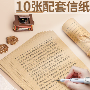 新款 高级质感送男女友手写情书 加厚鎏金浮雕纹理信封信纸火漆套装