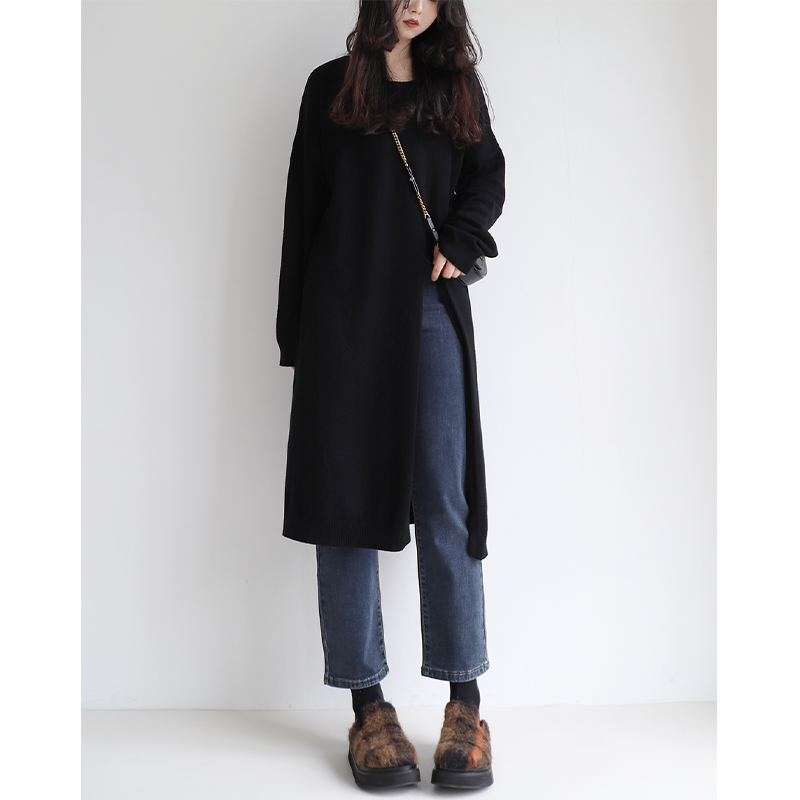 毛衣内搭外穿针织打底衫 侧开叉设计显瘦圆领中长款 思维断层 精分