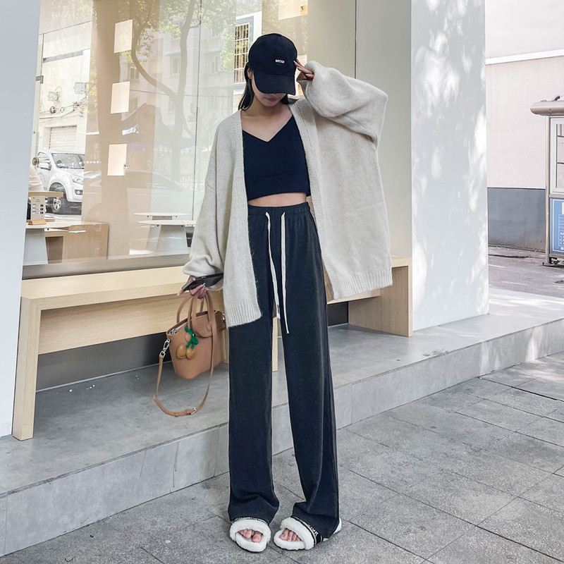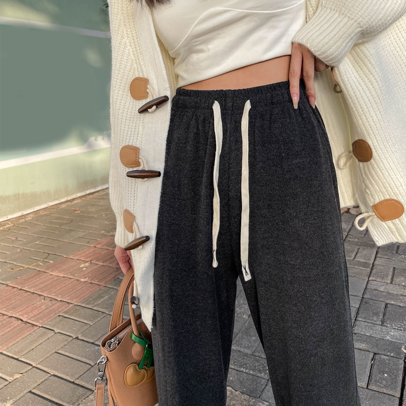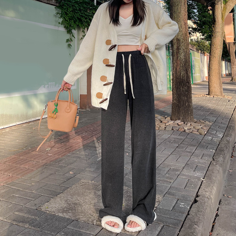 慵懒休闲加绒直筒拖地长裤 德绒阔腿裤 女秋冬高腰垂感黑灰色糯米裤