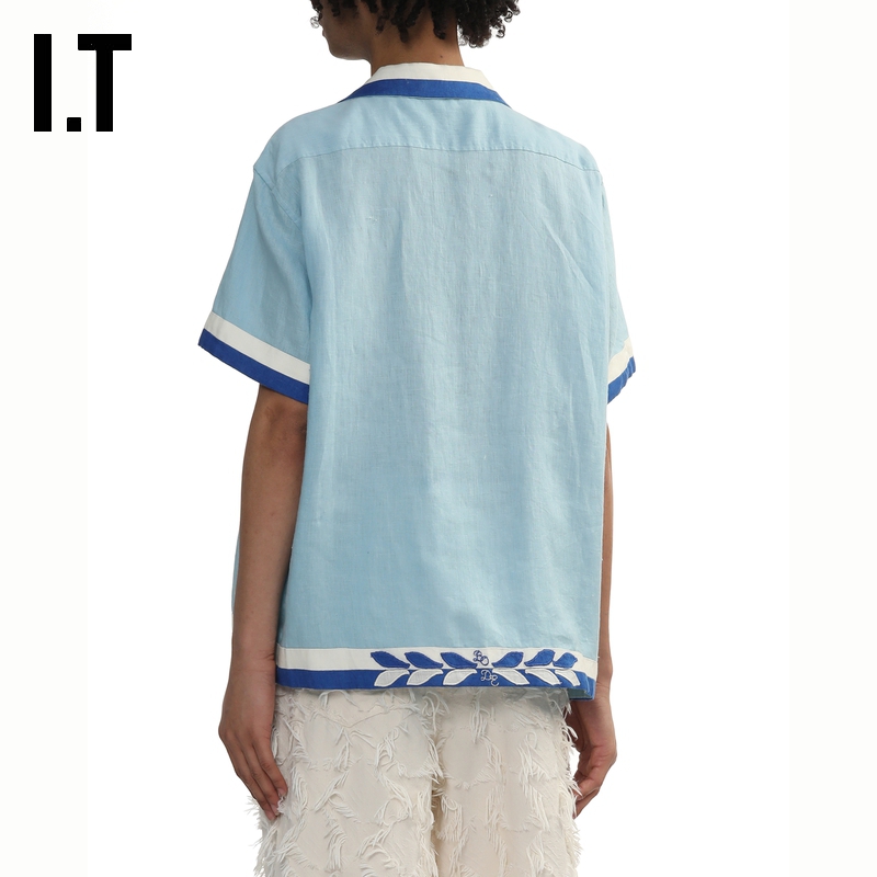 BODE男装 复古随性宽松拼色半袖 翻领短袖 新款 上衣5SH031MO 衬衫