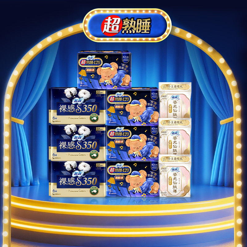 超长瞬吸防漏 苏菲裸感S贵族™棉纯夜用组合 详情领券减10元