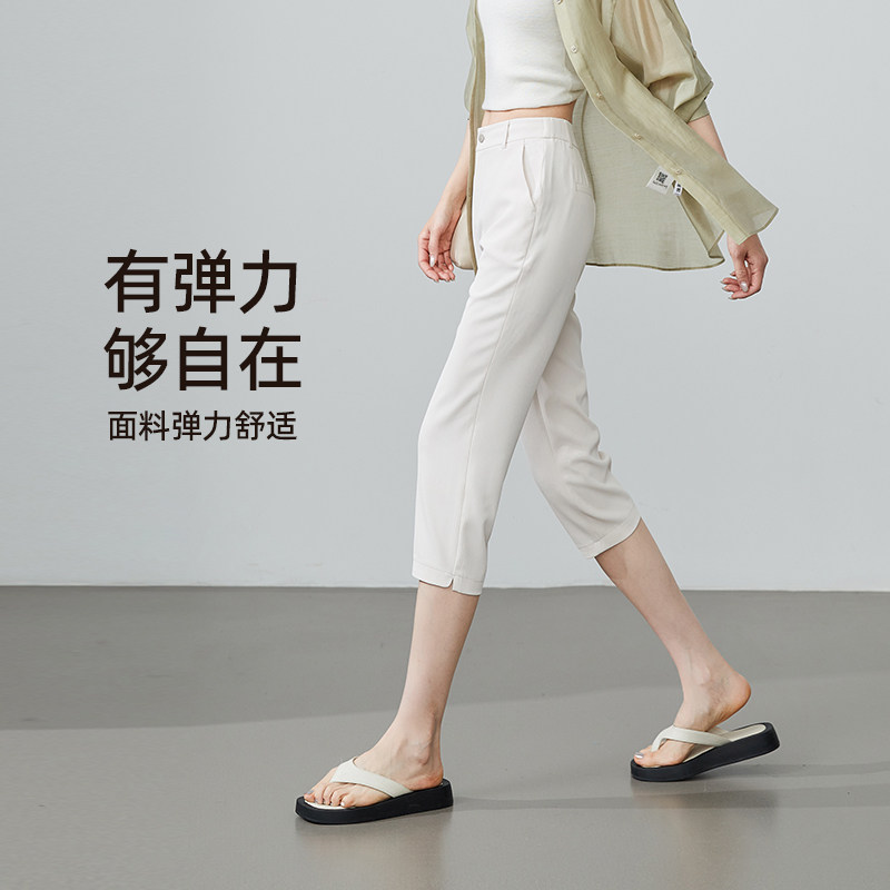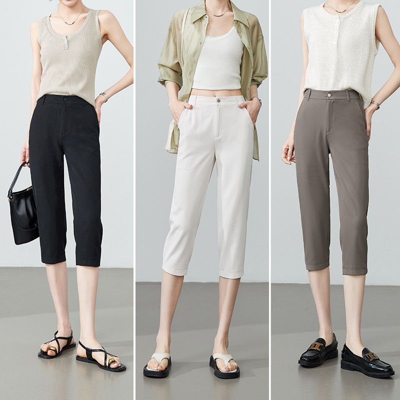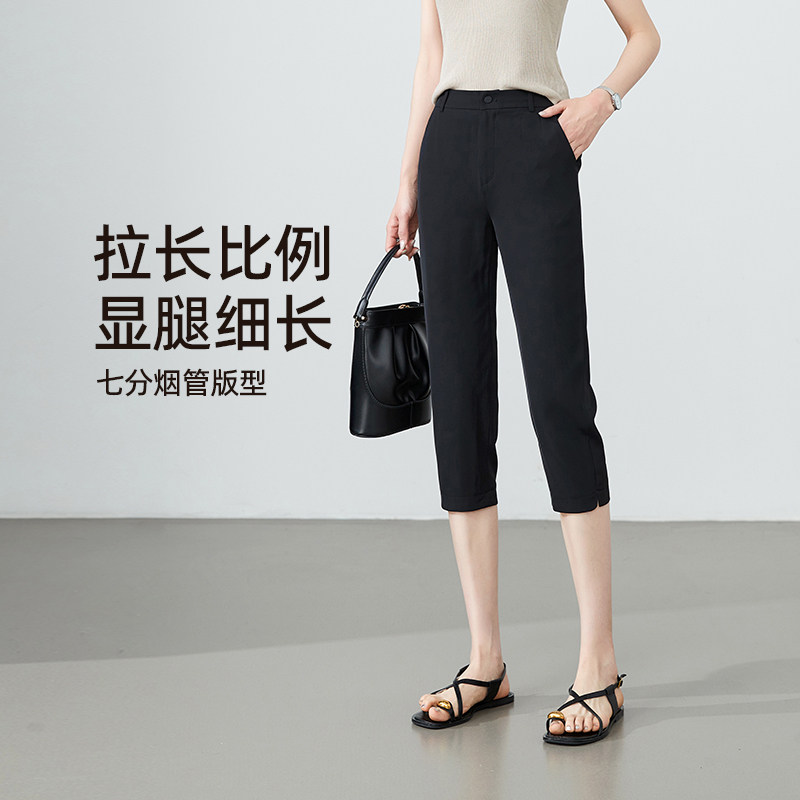 休闲裤 七分裤 女弹力显瘦夏季 逸阳女裤 黑色薄款 新款 铅笔裤 2026夏季