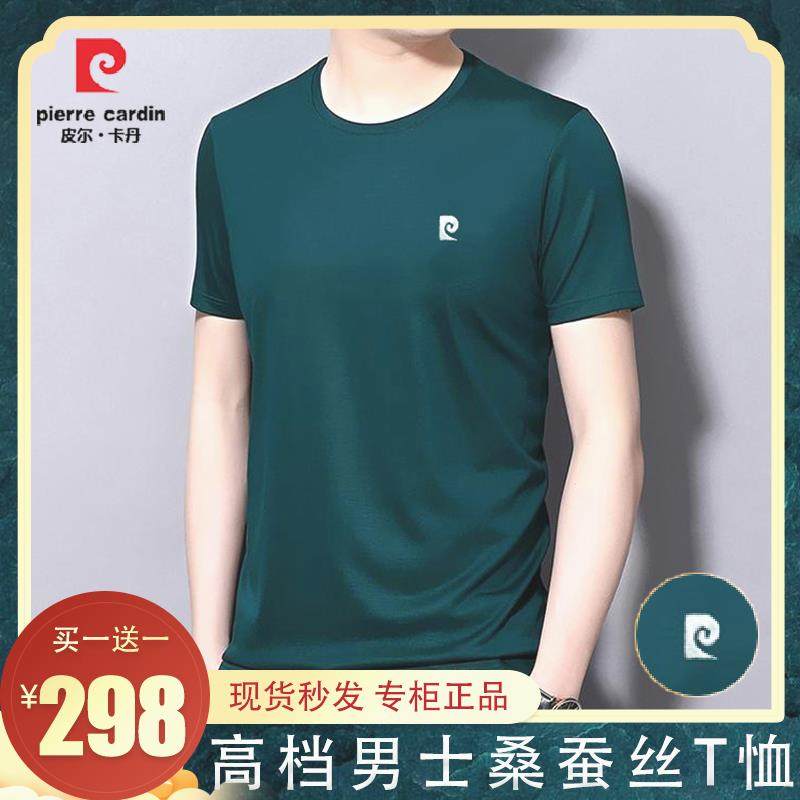 桑蚕丝短袖 时尚 T恤中青年休闲冰丝圆领体恤 高档男士 皮尔卡丹夏季
