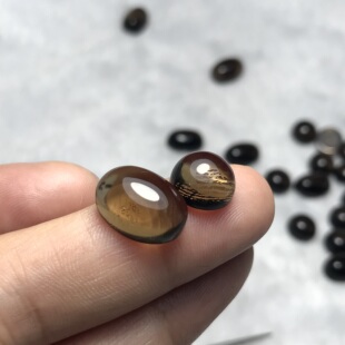 天然茶水晶蛋面椭圆形戒面裸石可镶嵌编绳绕线戒指吊坠耳钉手链