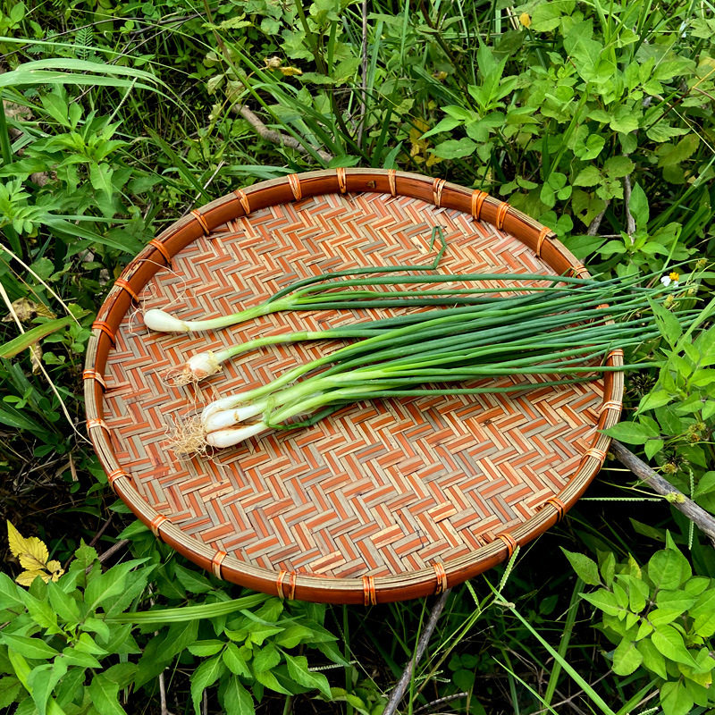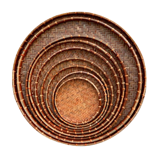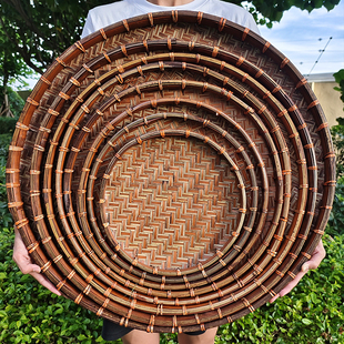复古竹编圆簸箕家用收纳盘大小号无孔竹匾干货茶叶晾晒盘装 饰老式