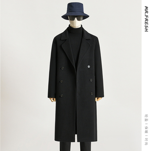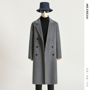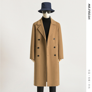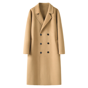 西装 过膝双面羊绒外套 领毛呢子风衣 中长款 纯羊毛双面呢大衣男士